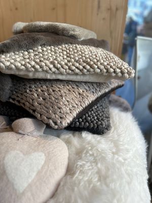 Wir haben zwei Modelle – die Kissen in der Schlingenoptik und in der Stickoptik. Beide gefallen ausserordentlich, sind in einer tollen Dimention und wärmen himmlich den Rücken. Die drei Farben passen sehr gut zu Naturtönen.